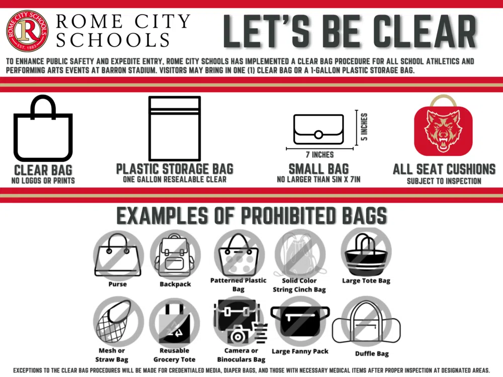 If you are going to be heading to the Corky Kell Classic Friday night, keep in mind that the Rome City School System has implemented new bag procedures for all school athletics and performing arts events held at Barron Stadium.