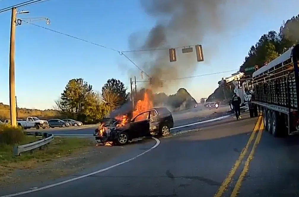 “On Wednesday, November 1, 2023, at approximately 8:27 a.m., an accident occurred at the intersection of Highway 411 and Mathis Road in Rome, Georgia. Three vehicles were involved in the accident which resulted in an occupied vehicle becoming fully engulfed in flames.