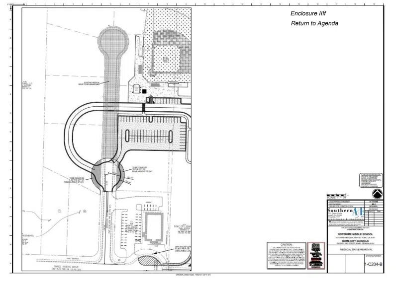 According to Rome Engineering Services Director Aaron Carroll, the school system will donate right-of-way to create a new cul-de-sac or terminus on Medical Drive. Carroll added that shortening medical Drive is not expected to impede current traffic flow.