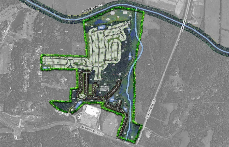 “The total property is approximately 300 acres,” said Rome-Floyd Planning Director Brice Wood. “The area to be rezoned back to suburban-residential is 182 acres. It will allow for approximately 465 single-family homes to be placed on that portion—approximately 200 in the first year. That means the total development would be around 900 units, down from the 1,231 that was previously proposed.”