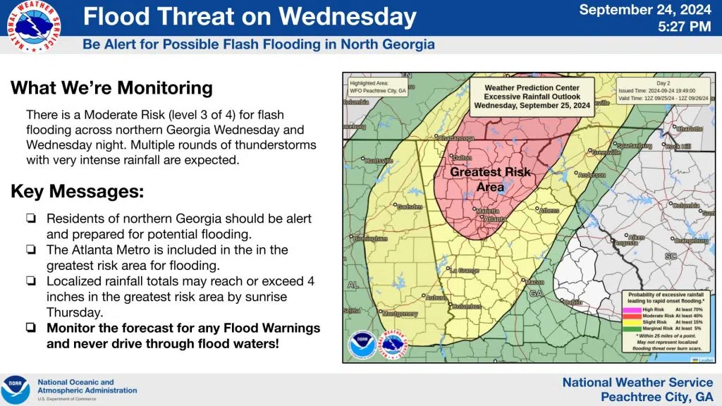 If you live in Atlanta or North Georgia please be aware that the risk for flooding in your area will begin to ramp up Wednesday.