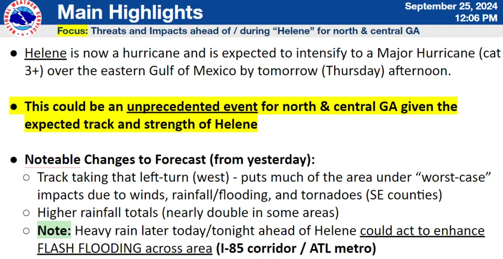 Heavy rainfall with Helene will likely lead to flooding concerns across north and central Georgia and now is the time to be prepared.