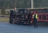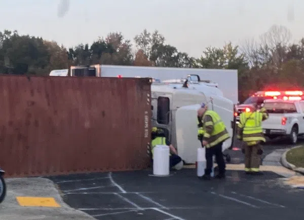 A truck hauling 53,000 pounds of cargo overturned at the intersection Tuesday morning.
