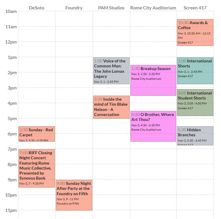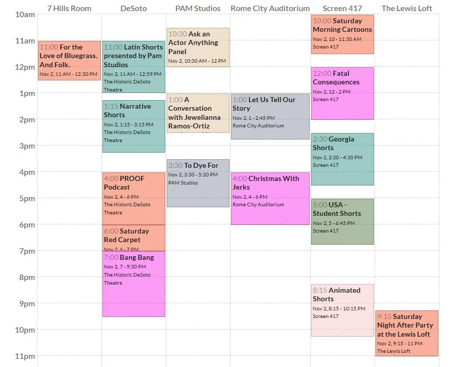 The festival is taking place all weekend long at the DeSoto Threatre, PAM Studios, Screen 417, the Rome City Auditorium, the 7 Hills Room, the Lewis Loft and the Foundry.