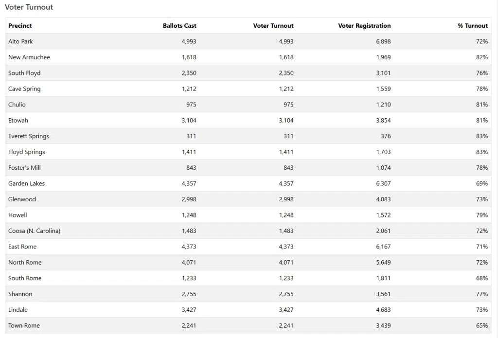 45,003 of 61,077 registered voters cast ballots, which is 74 percent. Turnout was 73 percent in 2020.