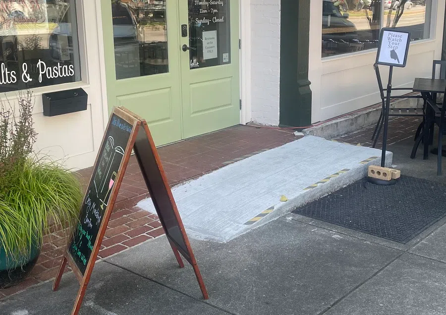 Since many of the buildings downtown date back to the 1800s, and the streetscape project on Broad Street was done before the Americans with Disabilities Act, this is not the first time a business has had to deal with this issue.