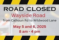The road will be closed between Calhoun Road and Wildwood Lane.