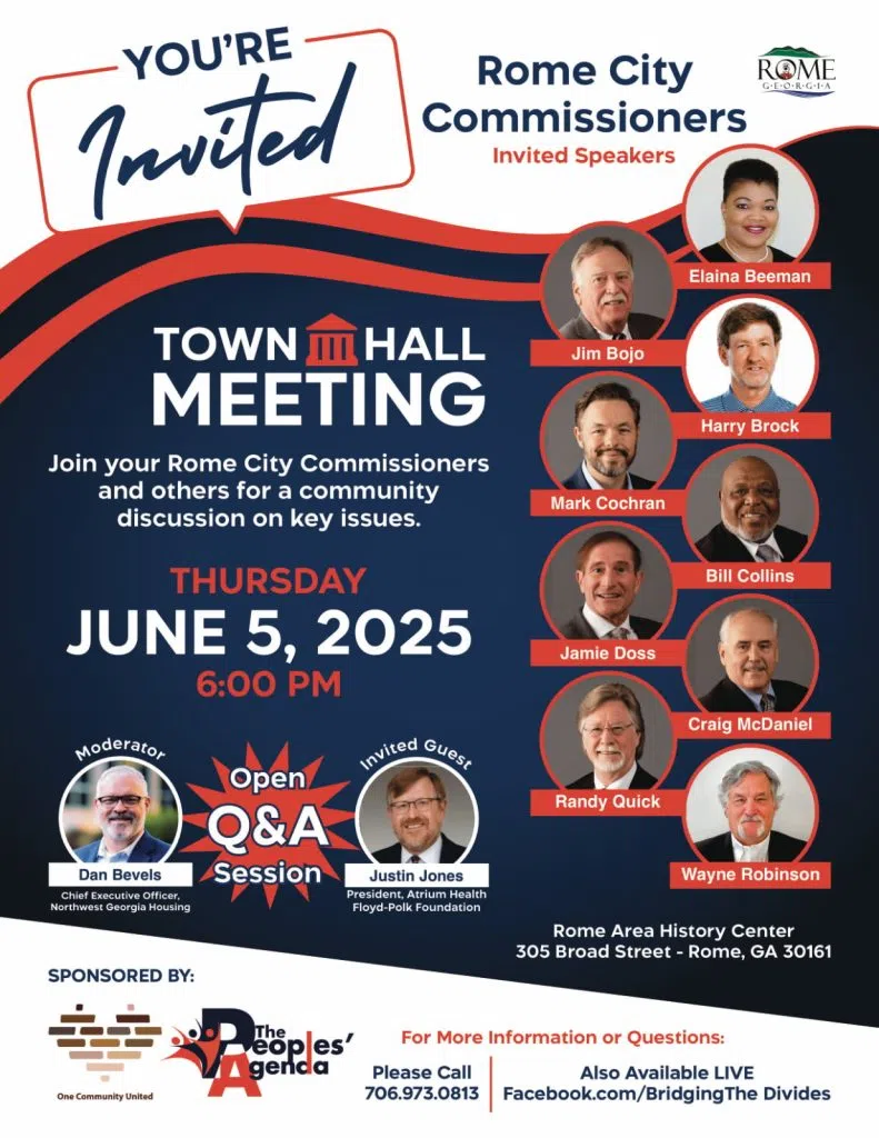 The community is invited to a discussion of key issues in the community with Rome City Commissioners and others during a town hall meeting on Thursday.