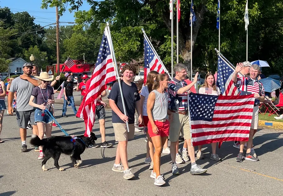 The parade, now in its 41st year, made its way through Dowtown Cave Spring, with participants (both walkers and vehicles) decked out in red, white, and blue.
