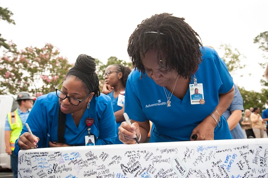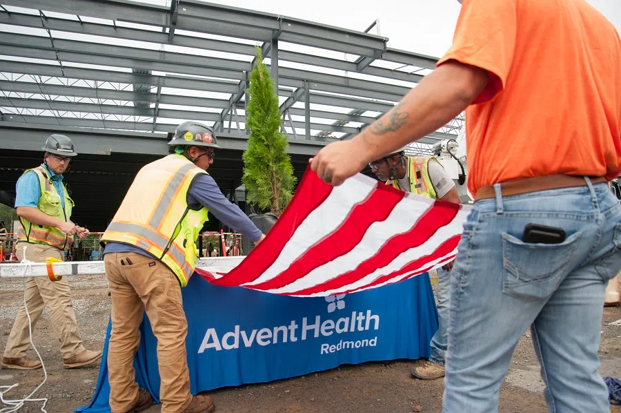 AdventHealth Redmond marked a major milestone in the construction of its new Heart and Vascular Institute with a traditional Topping Out ceremony on August 13.