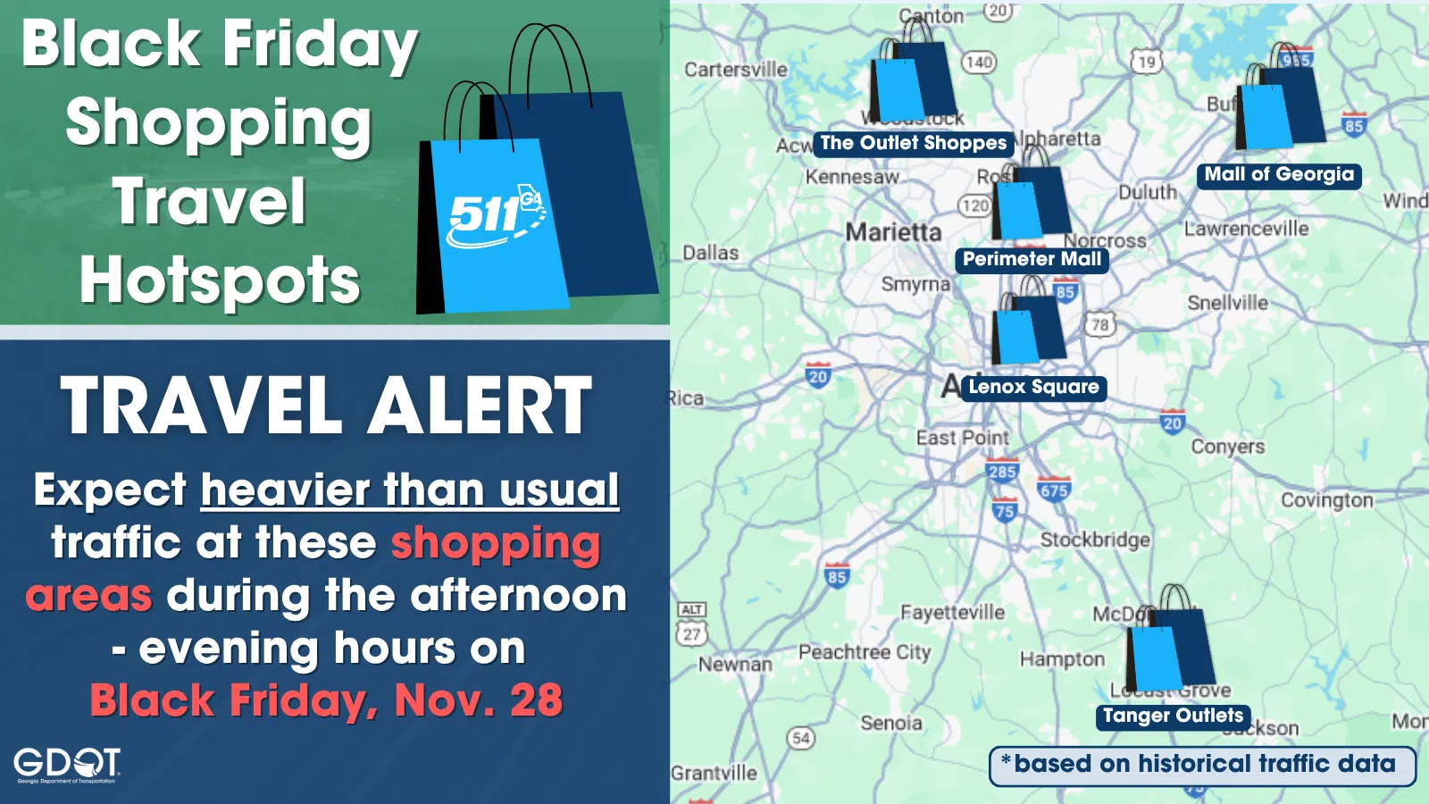 With Black Friday shopping, historical data shows these traffic predictions for corridors near popular metro Atlanta shopping areas: