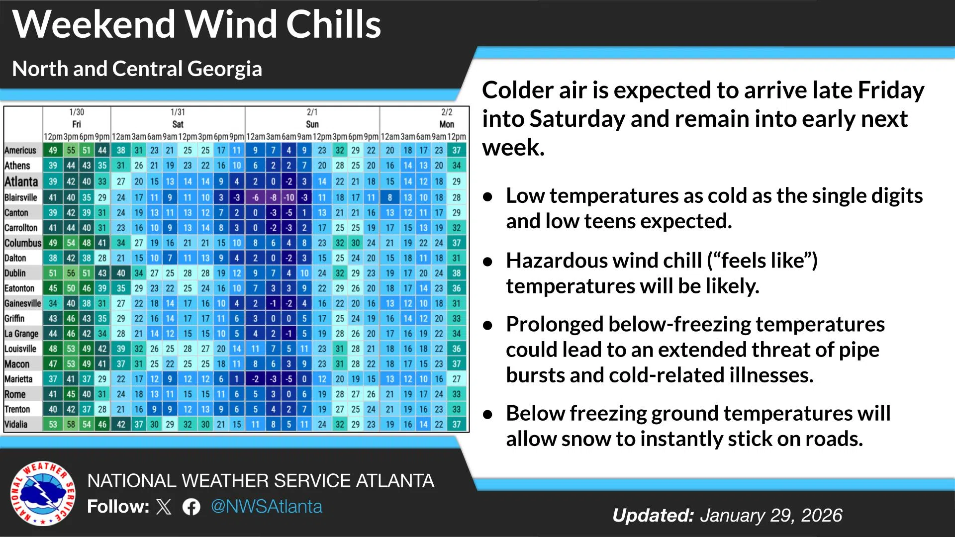An Extreme Cold Watch is in effect for all of North Georgia from Saturday evening through Sunday afternoon.