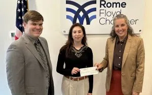 (Left to right) Ethan Branch, director of Workforce at the Rome Floyd Chamber; Medina Safic, Career Services Coordinator at GNTC; and Pam Powers-Smith, president of Rome Floyd Chamber, pose for a picture at the Rome Floyd Chamber.